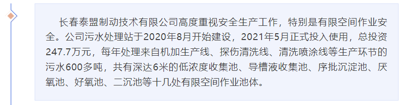 长春泰盟制动技术有限公司高度重视安全生产工作,特别是有限空间作业安全。