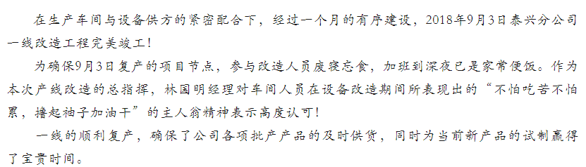 泰盟股份泰兴分公司铸造二线建设工程于2018年8月8日正式开工建设,同时对现有铸造一线设备进行改造升级,已提高产品制造过程的质量保证能力。将实现球铁和灰铁的分离生产,总产能将提升至5万吨/年,铸造二线预计2018年12月份正式投产。