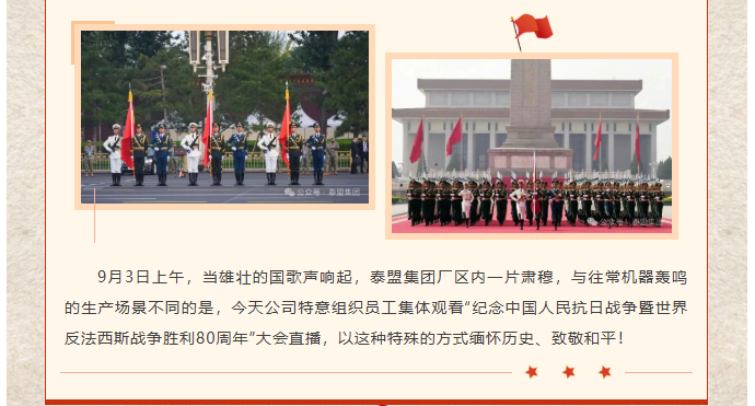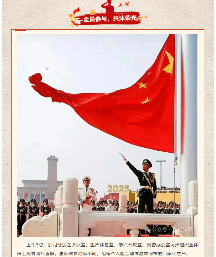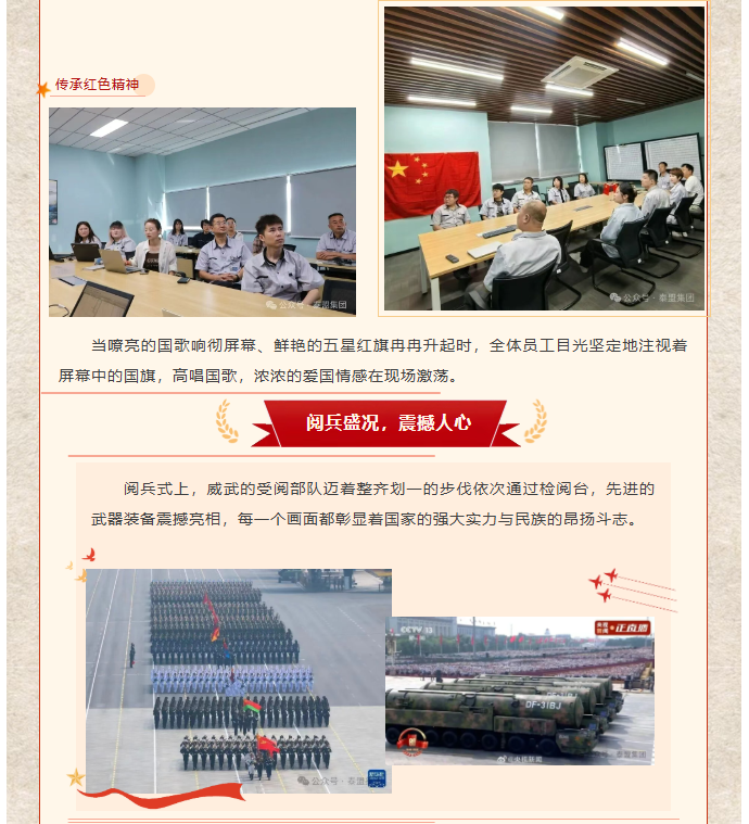 “承民族精神,守制造初心”——泰盟全员共观阅兵盛典!