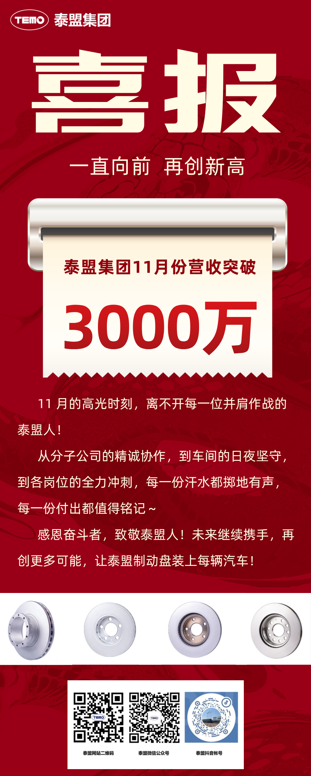 感恩奋斗者,致敬泰盟人!未来继续携手,再创更多可能,让泰盟制动盘装上每辆汽车!