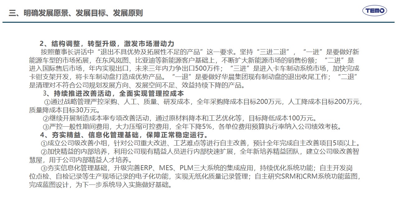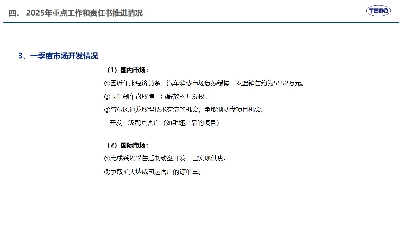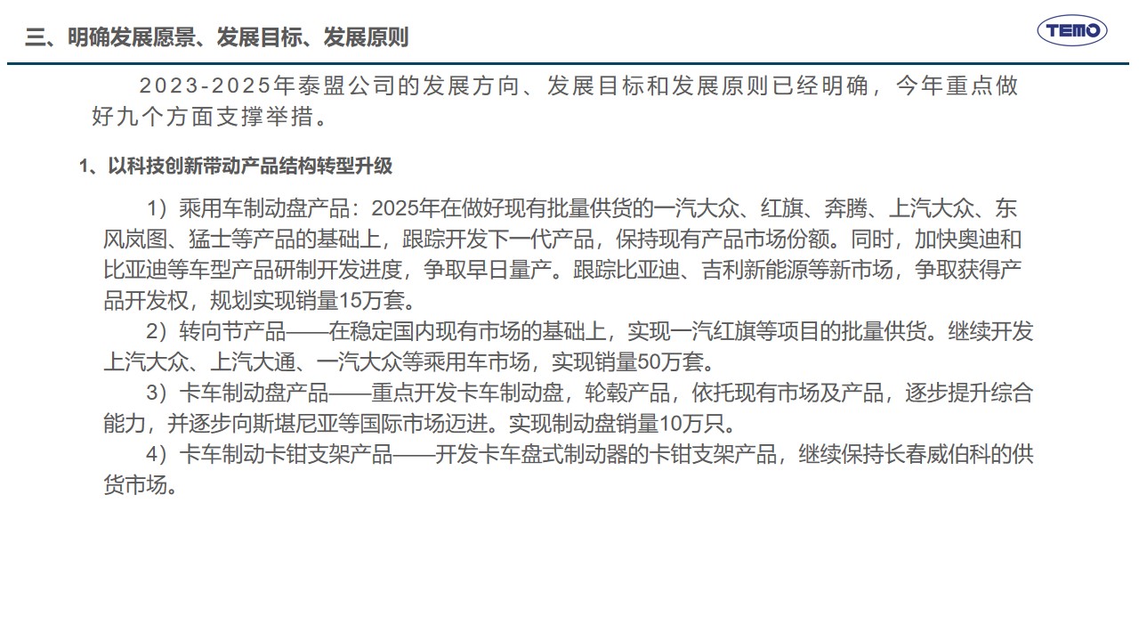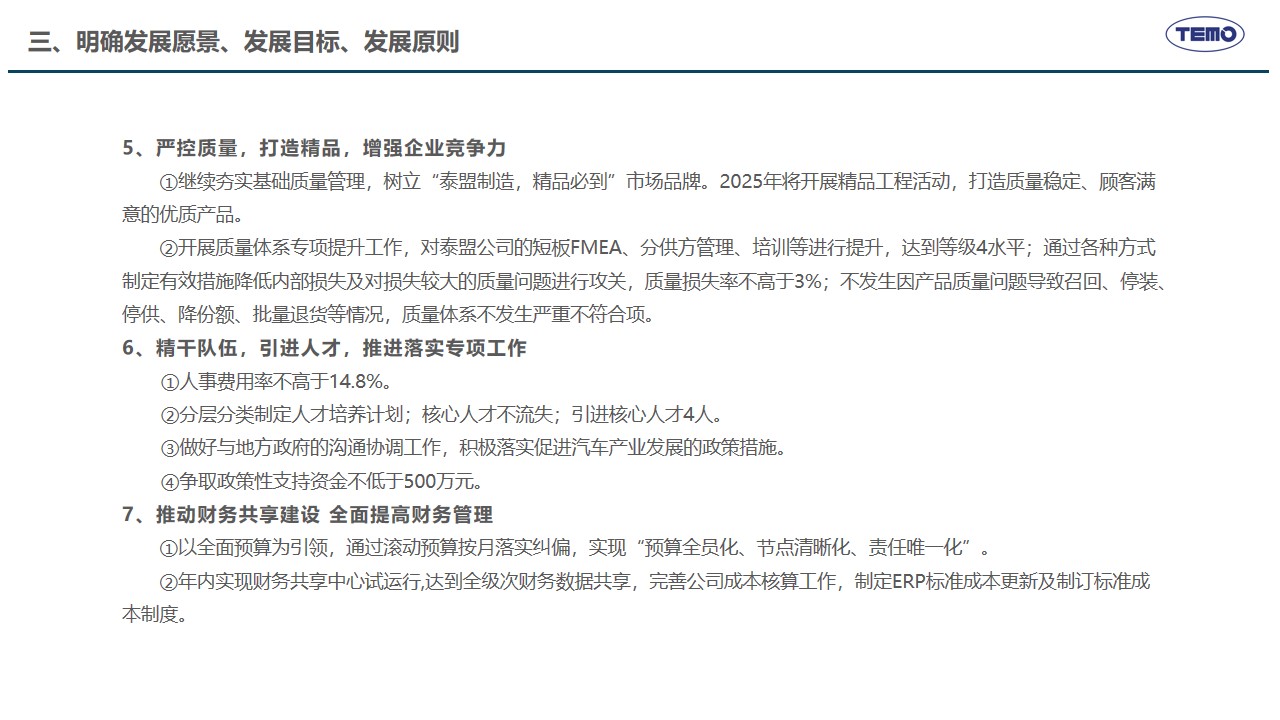 2月10日,春节刚过,泰盟公司召开新年度开工动员会,主要任务是全面落实2025年度工作会议各项部署,学习贯彻董事长的讲话精神,高效推动措施有效落实。在公司年度工作会议上,董事长明确了公司“推动高质量发展,建设具有全球竞争力的创新型企业”的发展使命愿景以及未来三年的发展方向、发展目标和发展原则,提出了九大改革创新举措支撑目标的实现。