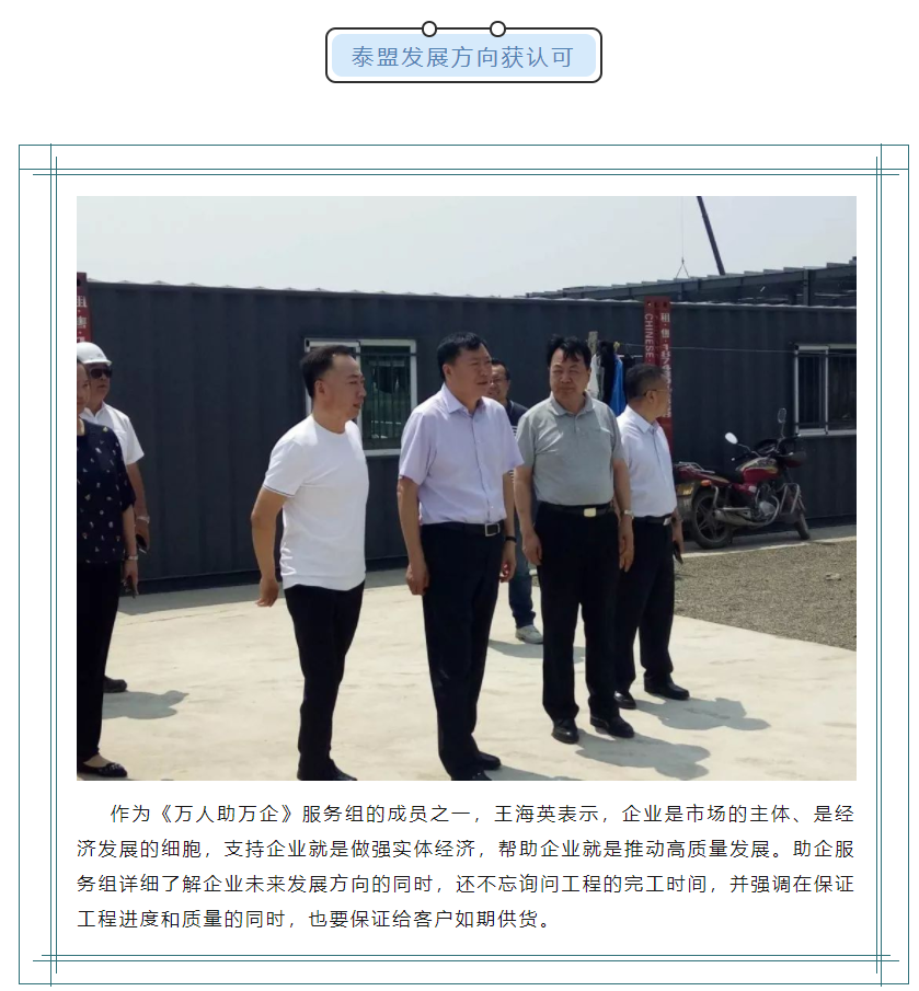 助力企业高质量健康发展,海英副市长走进长春泰盟现场办公